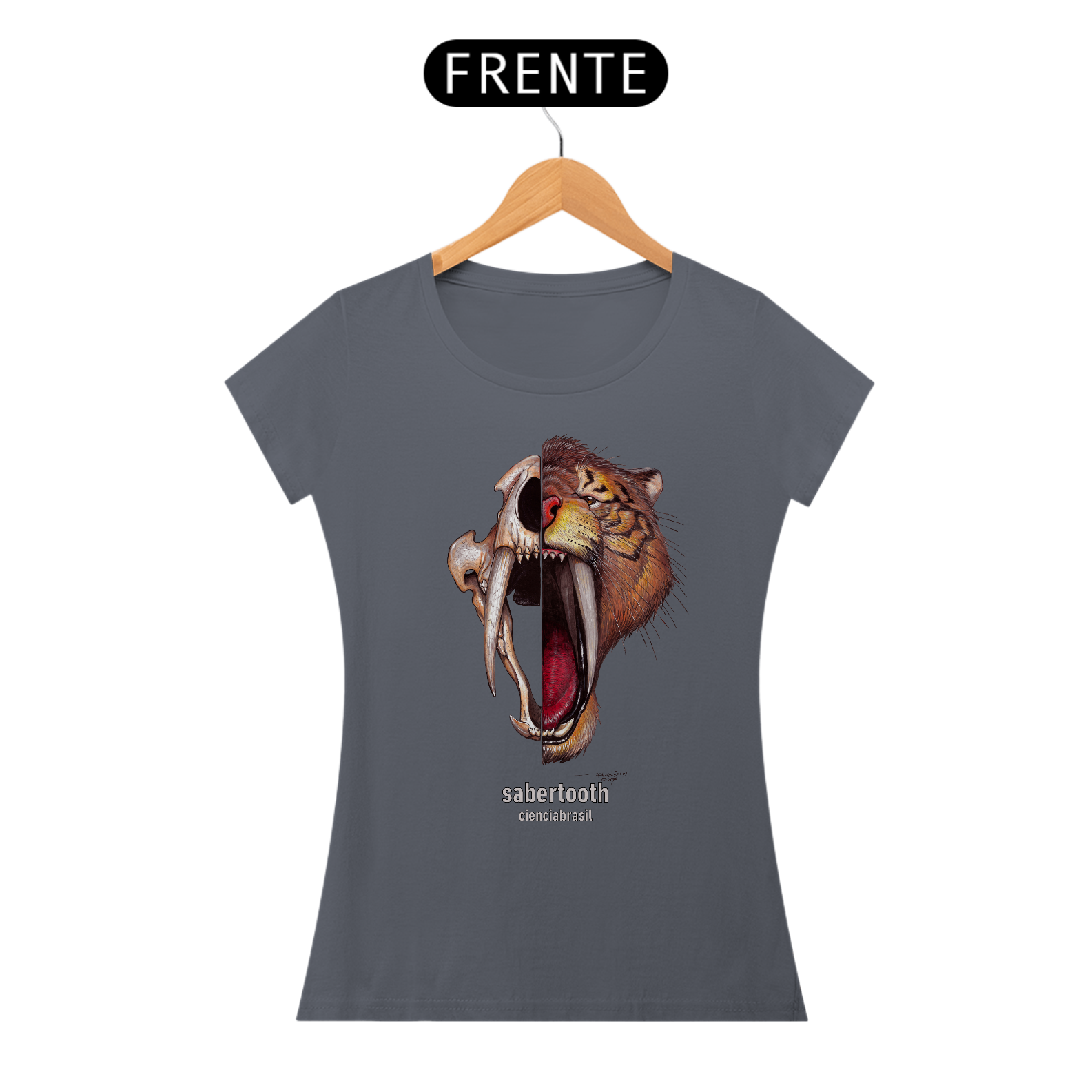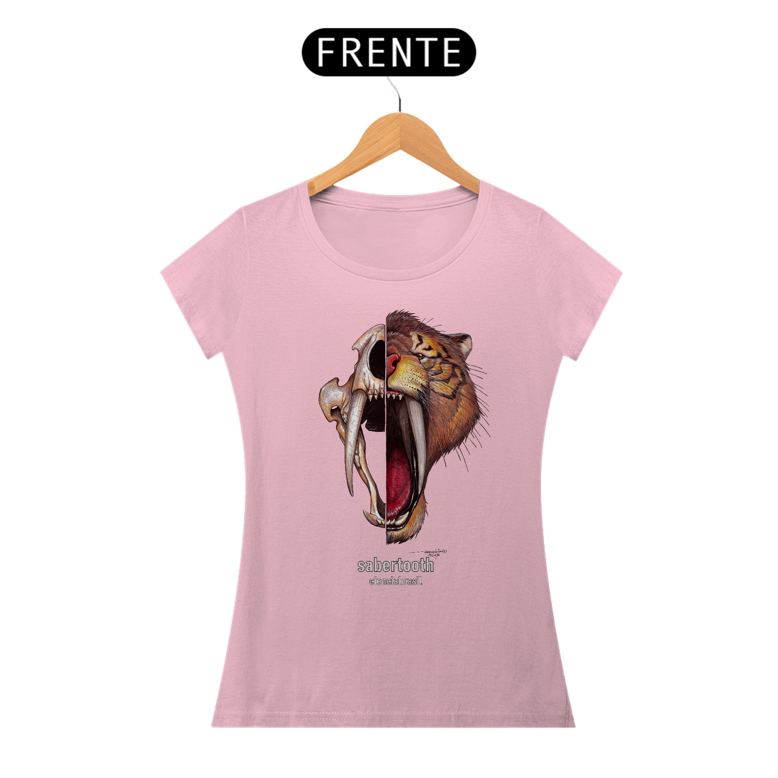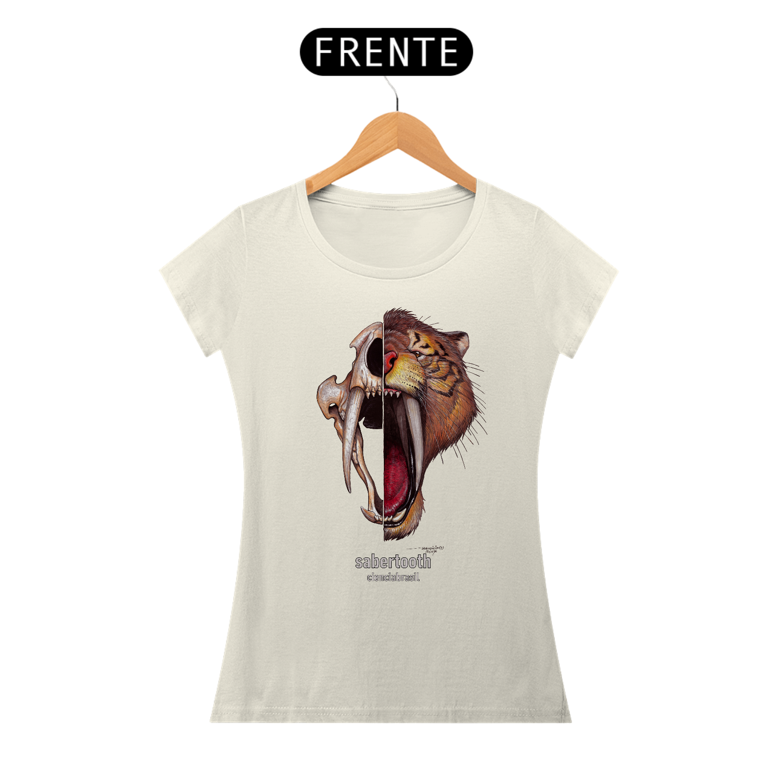 Mais legal ainda é poder usar esta linda estampa do nosso tigre-dentes-de-sabre.