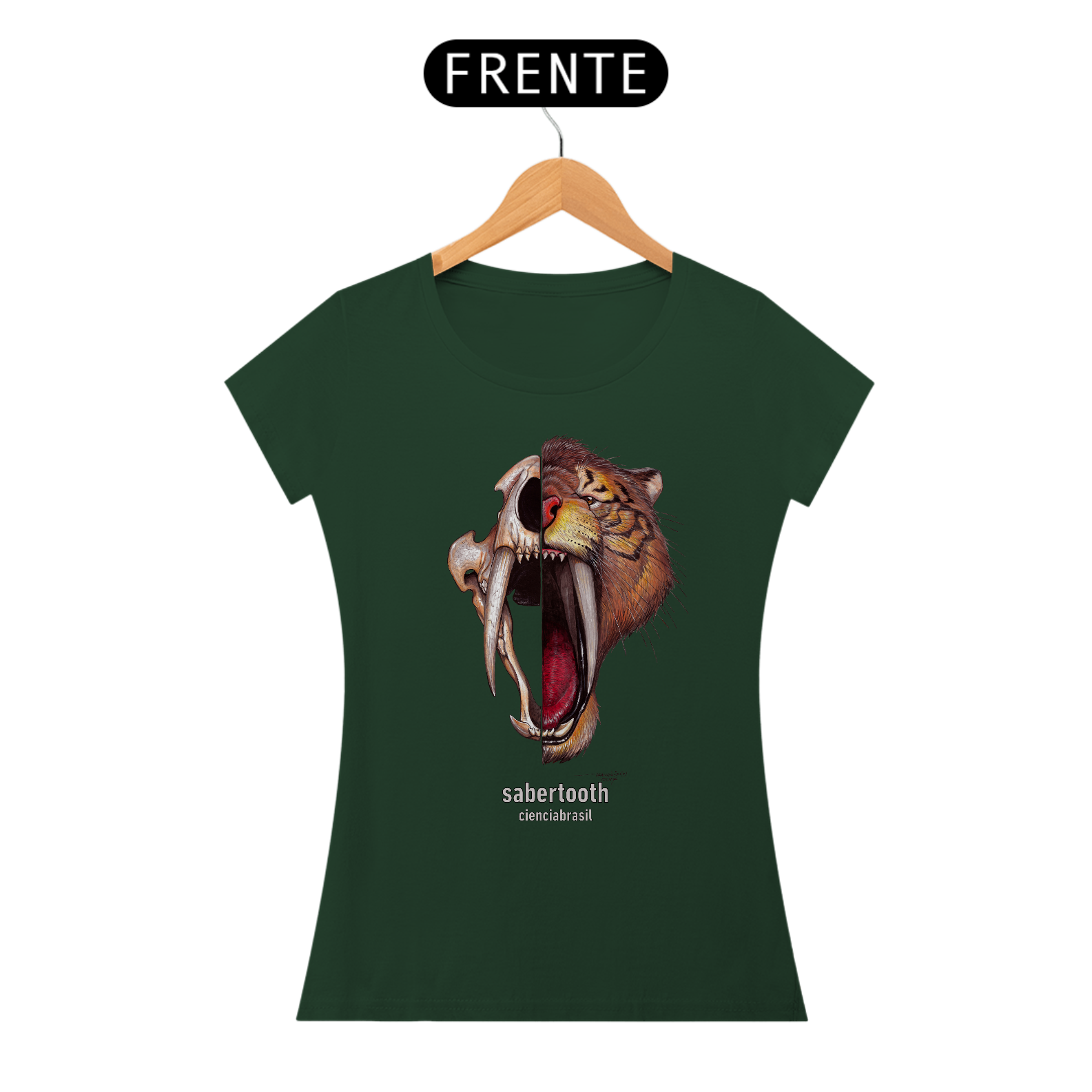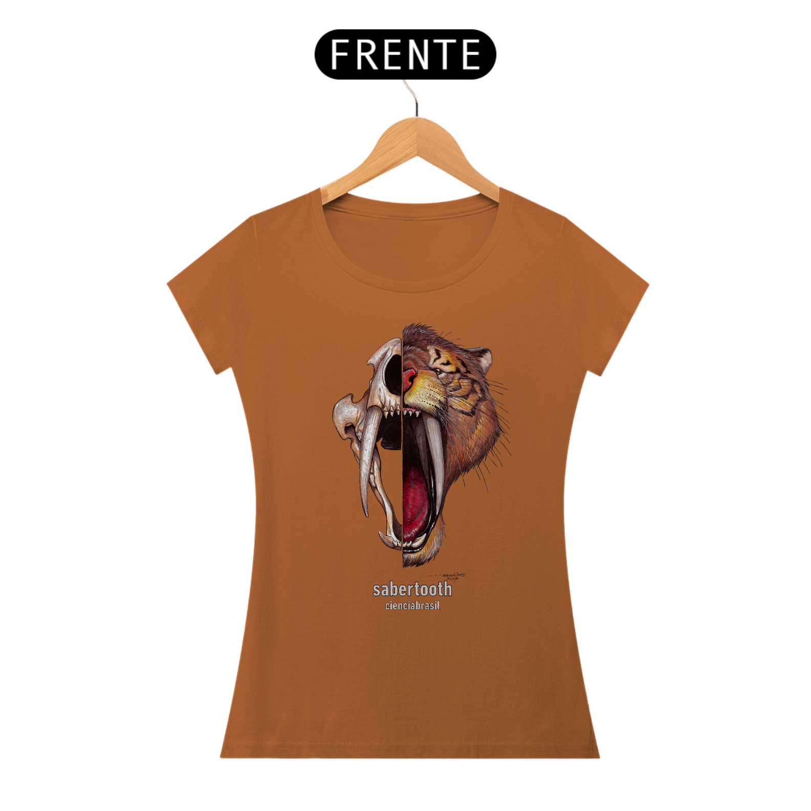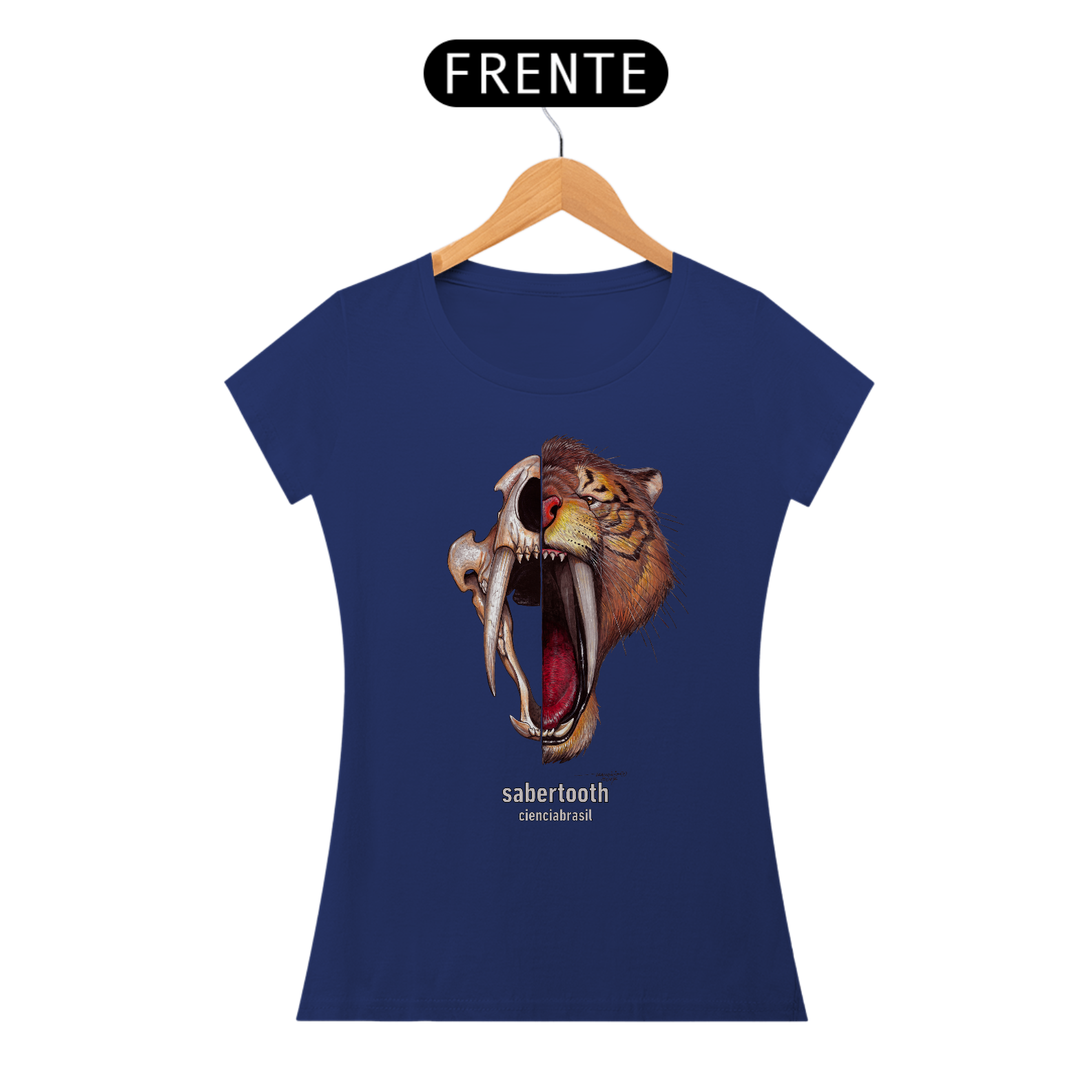 Mais legal ainda é poder usar esta linda estampa do nosso tigre-dentes-de-sabre.