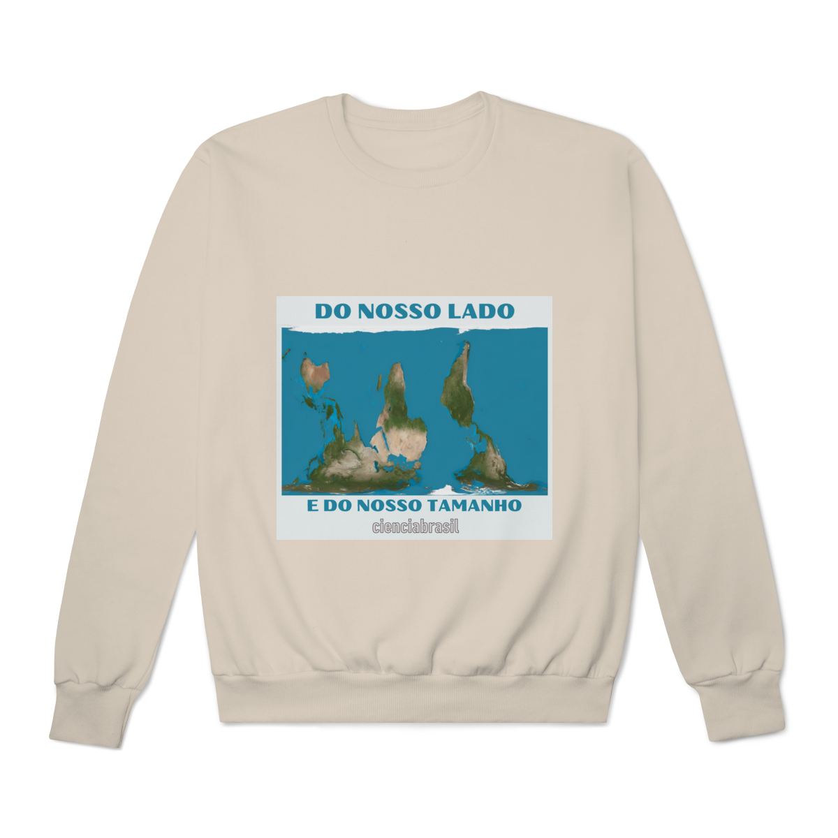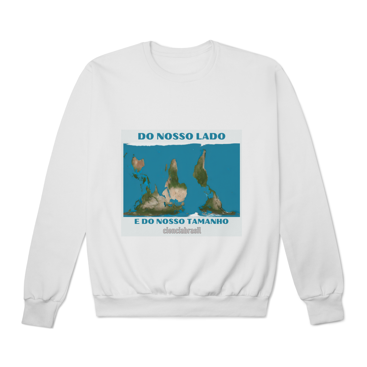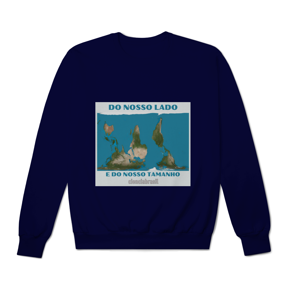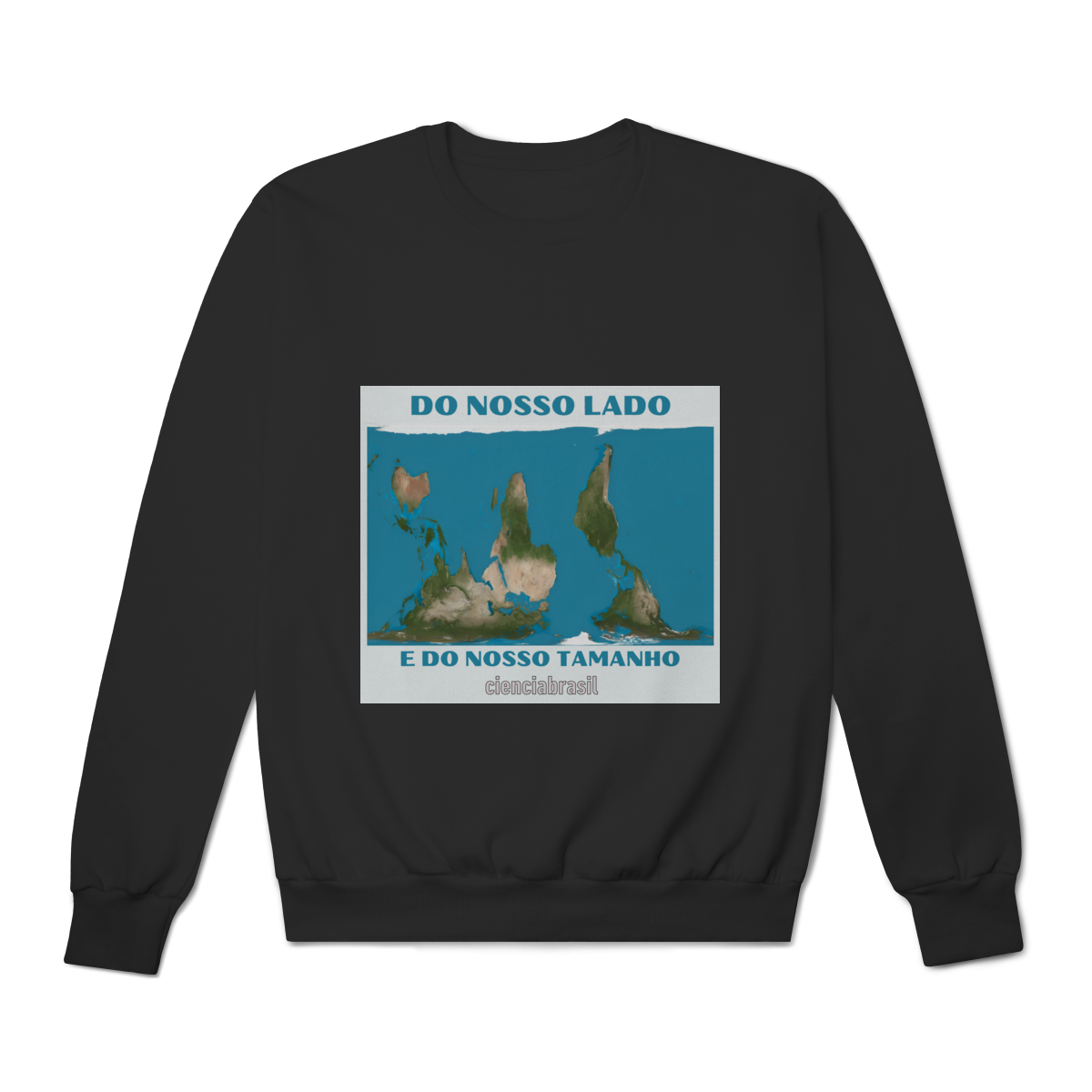 O Mapa Mundi, na projeção de Peters, que exibe o tamanho real dos continentes, e com o nosso hemisfério virado para cima, pois no universo não existe Norte nem Sul.