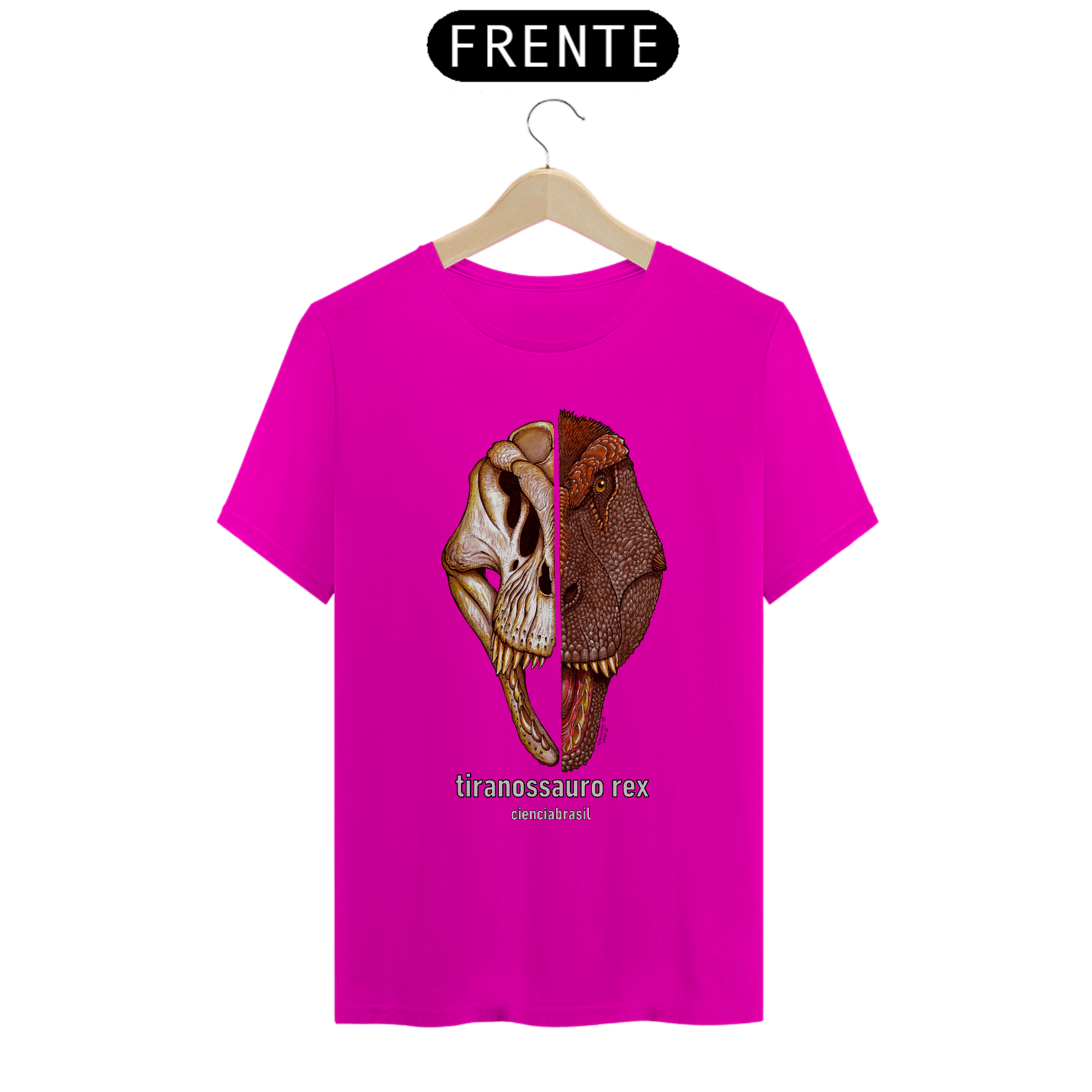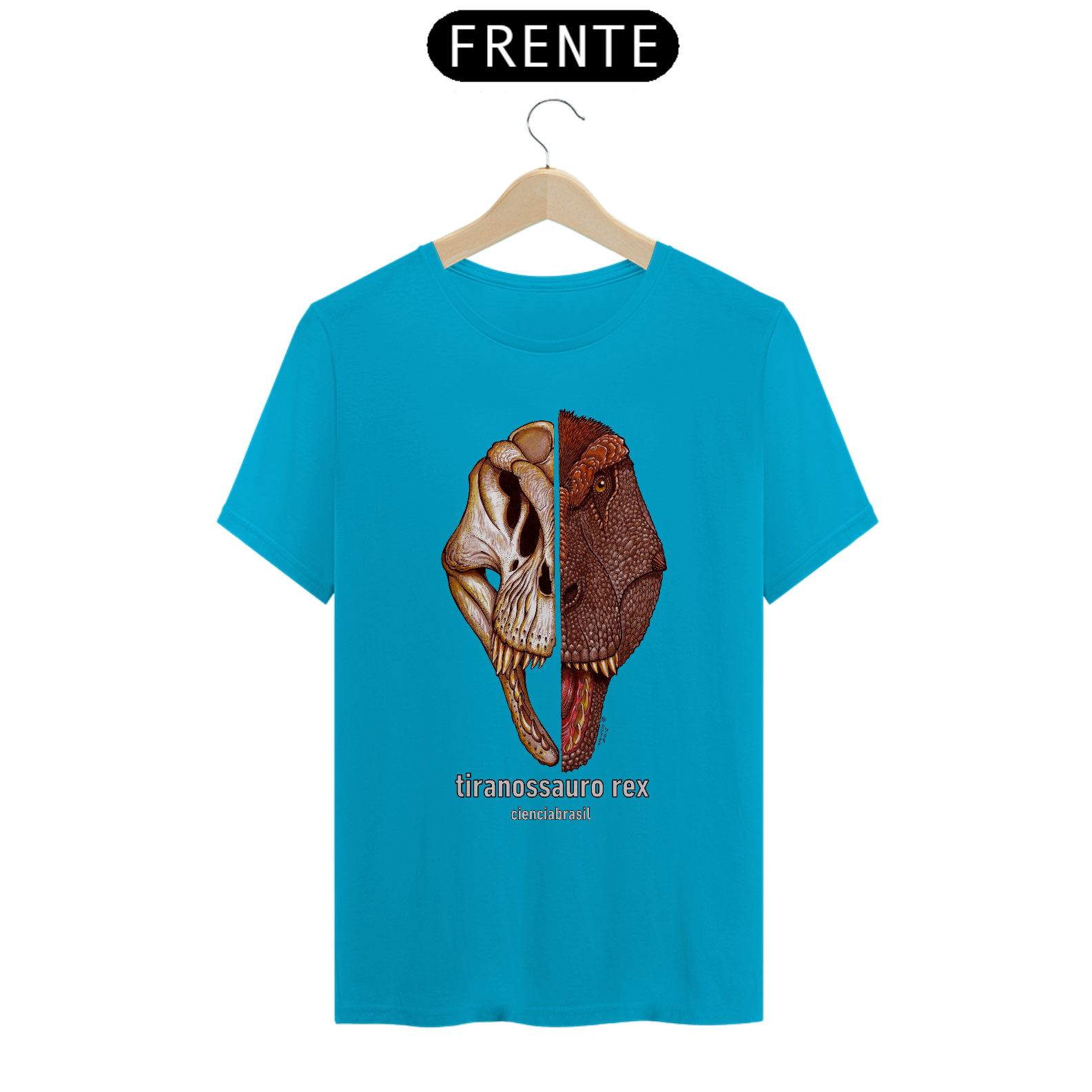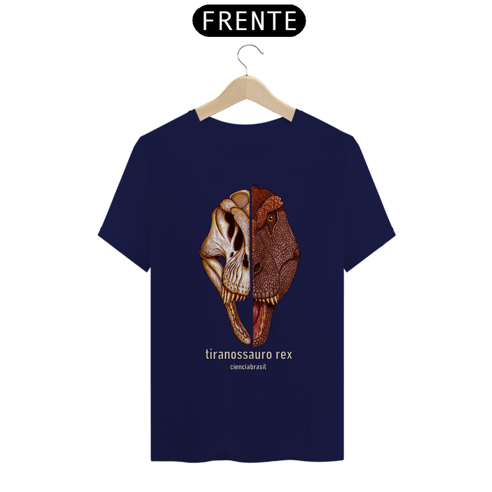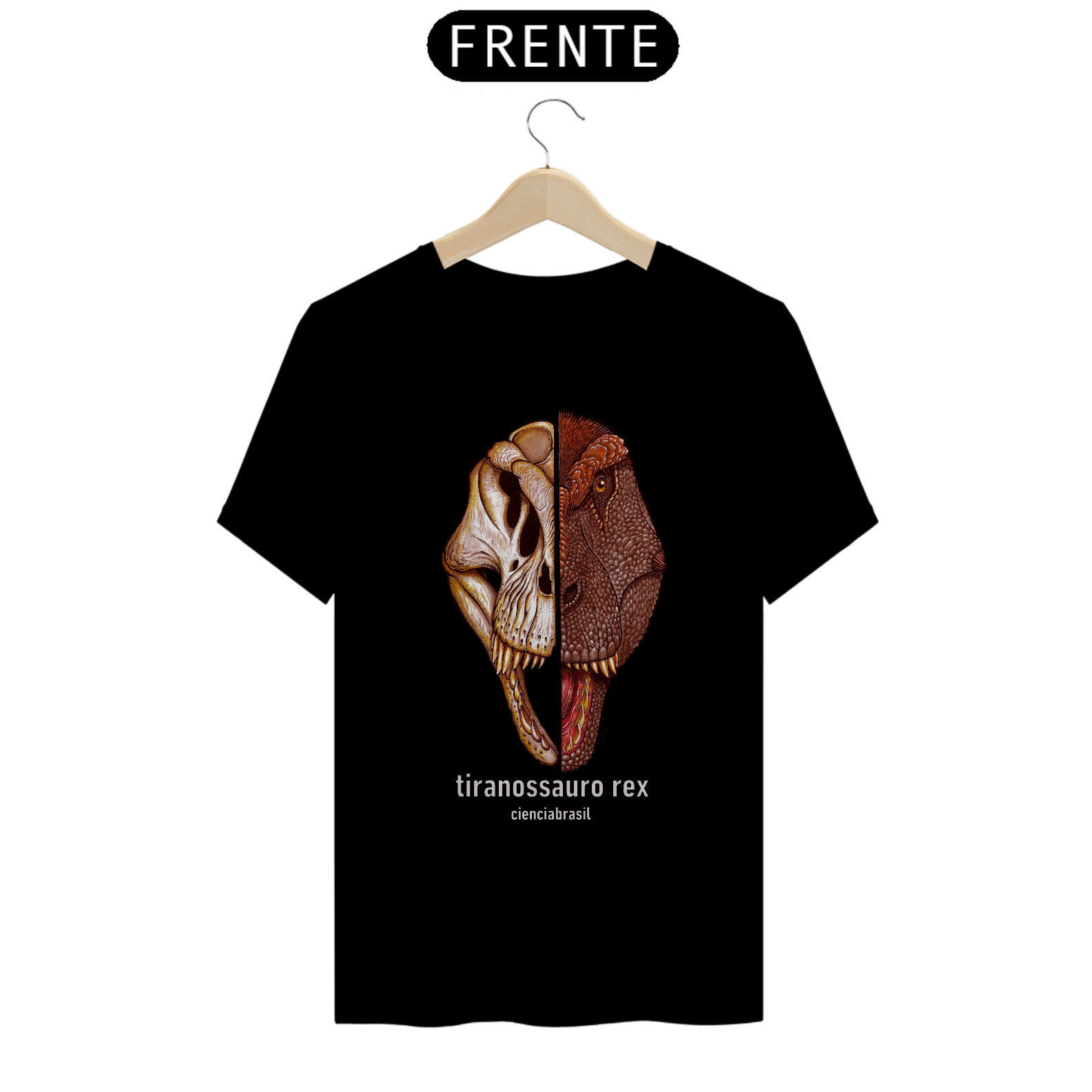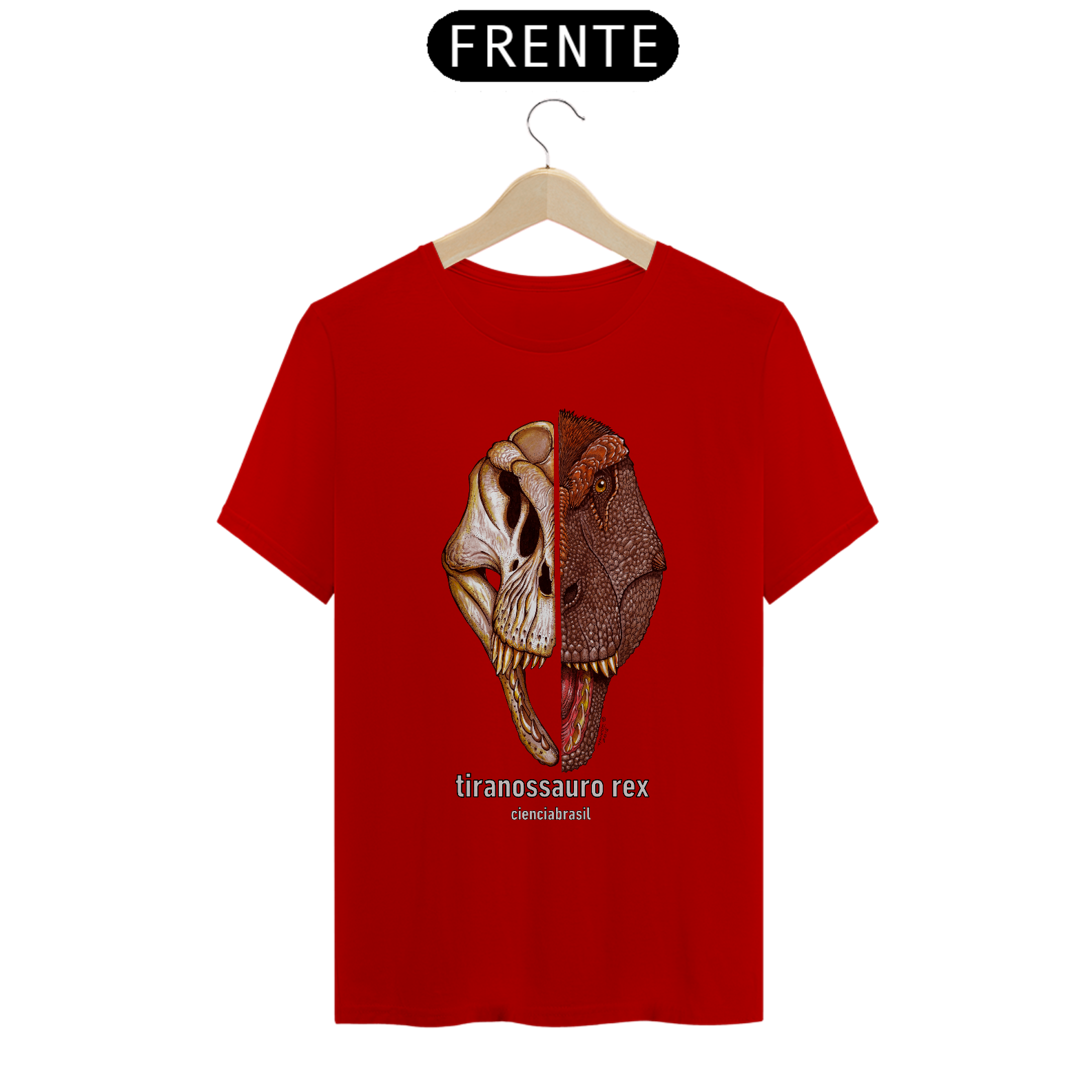 Olha que legal esta camiseta com a ilustração exclusiva do Tiranossauro rex, o mais terrível dinossauro que existiu!