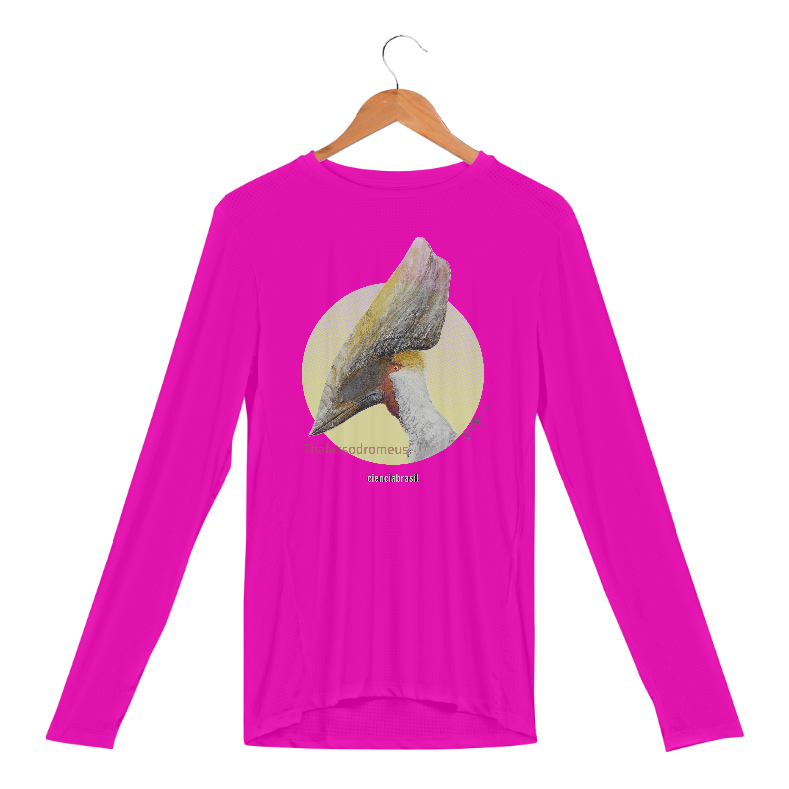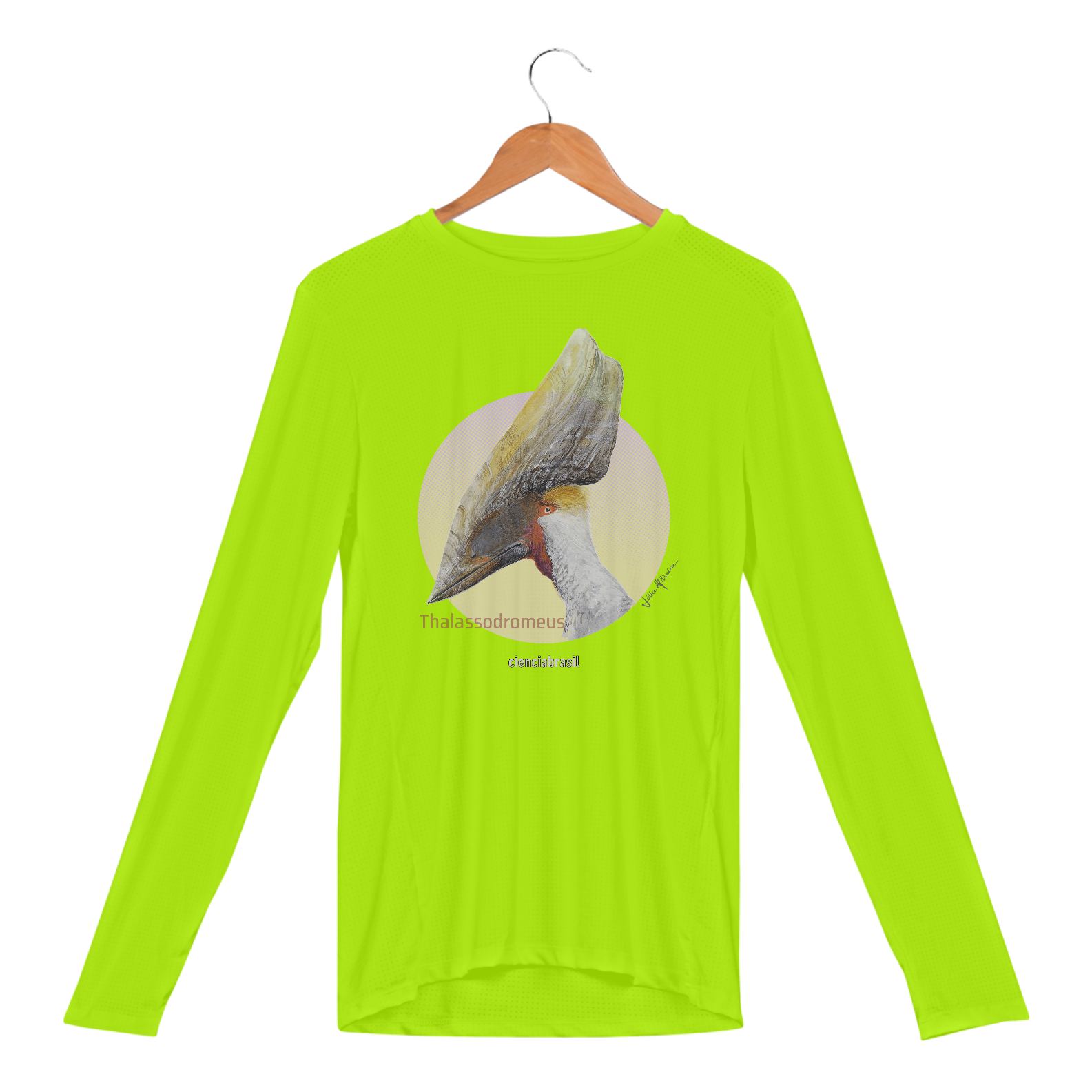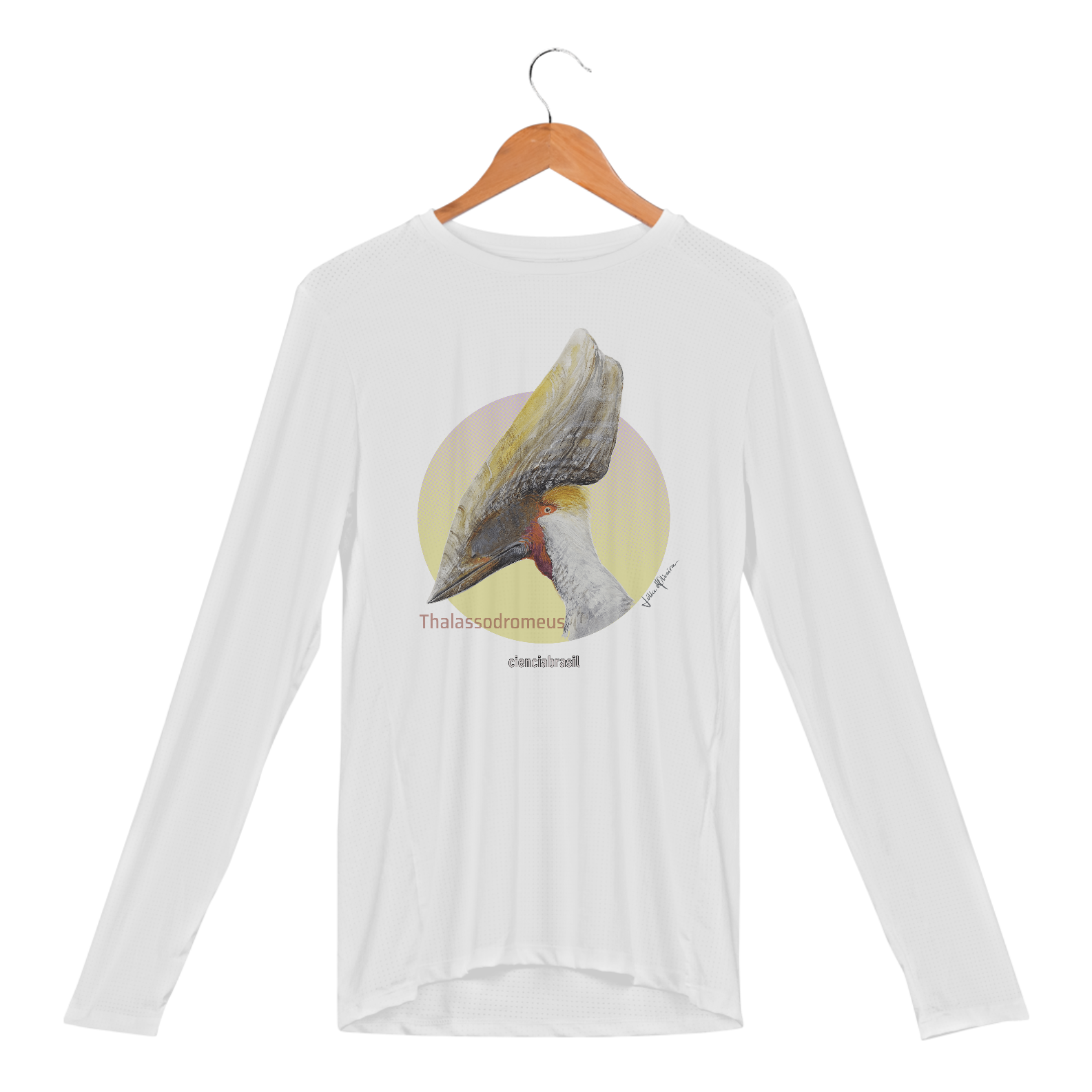 Este é o Thalassodromeus, descrito em 22, cuja enorme crista era uma das mais impressionantes entre os pterossauros do Araripe. E aqui está retratado nesta linda estampa criada paleoartista Júlia d'Oliveira.